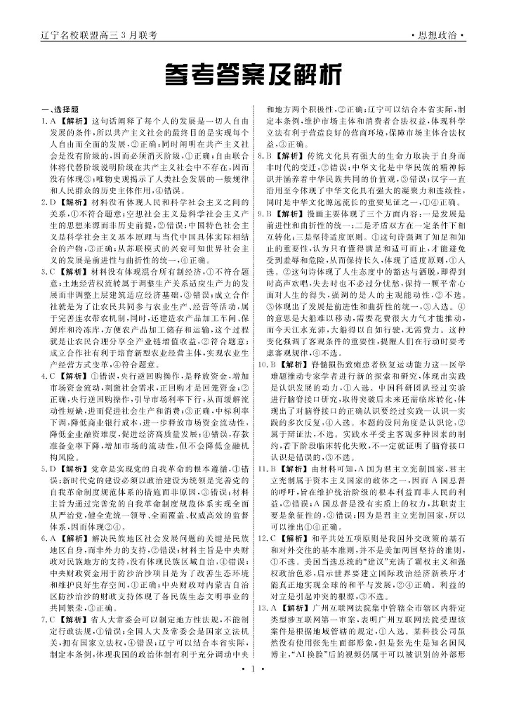 辽宁省名校联盟2025年高三3月份联合考试 政治答案.pdf