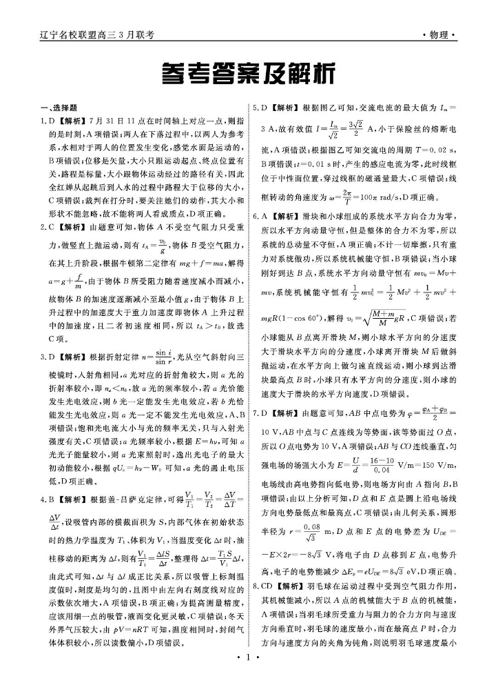辽宁省名校联盟2025年高三3月份联合考试 物理答案.pdf