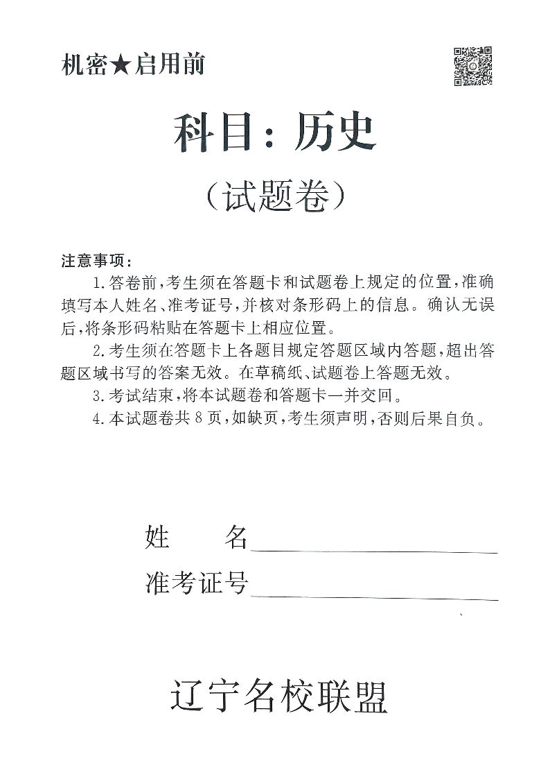 辽宁省名校联盟2025年高三3月份联合考试 历史.pdf