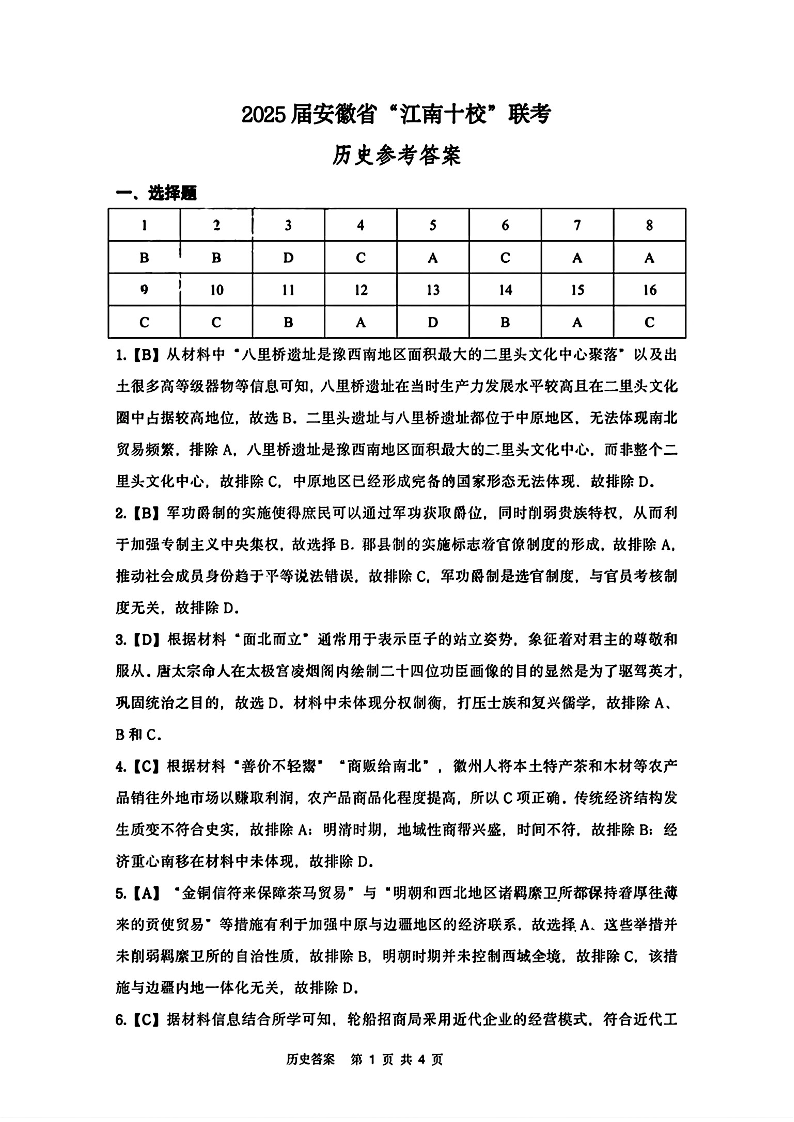 安徽省江南十校2025届高三3月联考 历史答案.pdf