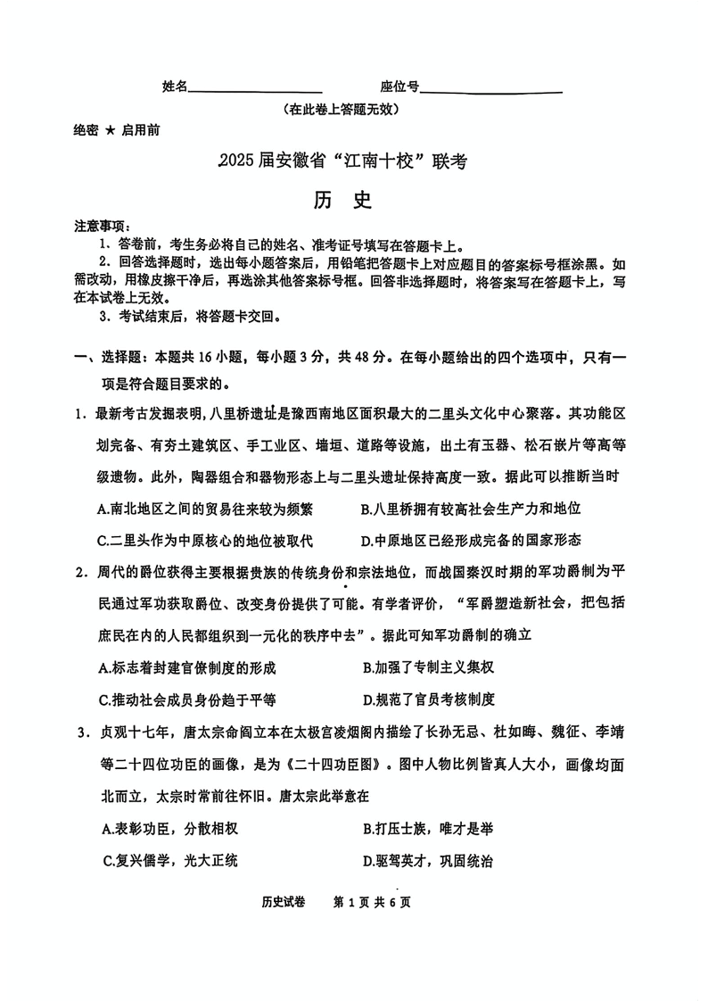 安徽省江南十校2025届高三3月联考 历史.pdf
