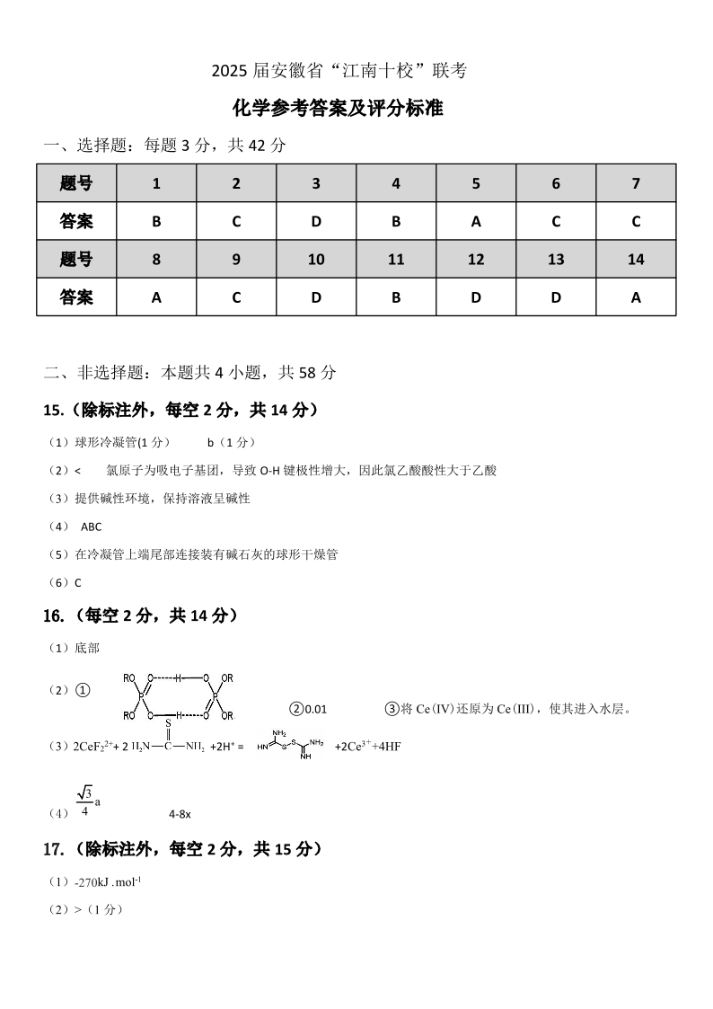 安徽省江南十校2025届高三3月联考 化学答案.pdf