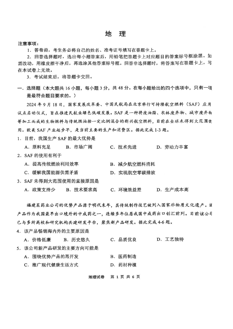 安徽省江南十校2025届高三3月联考 地理(含答案).pdf