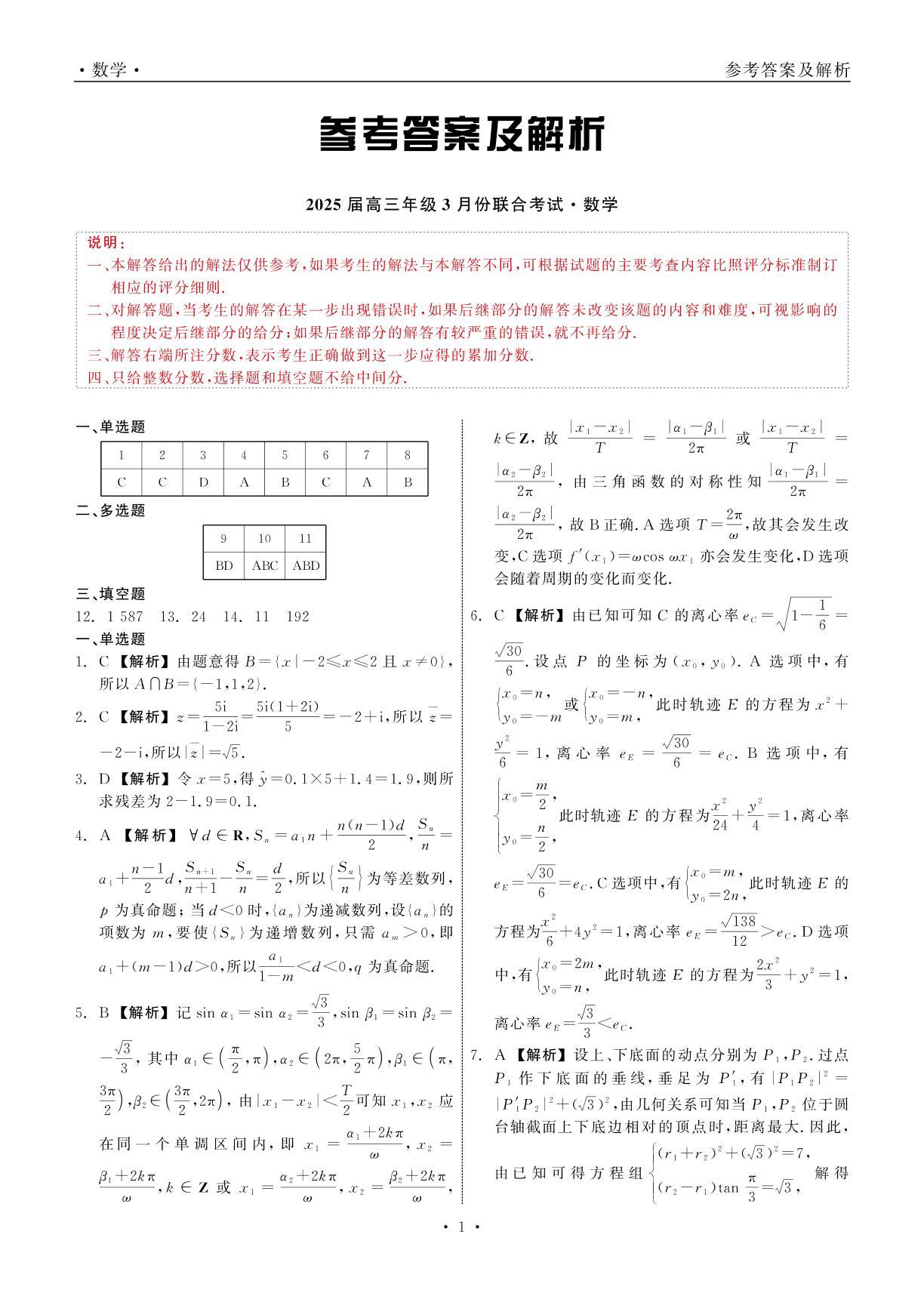 辽宁省点石联考2025届高三年级3月份联合考试 数学答案.pdf