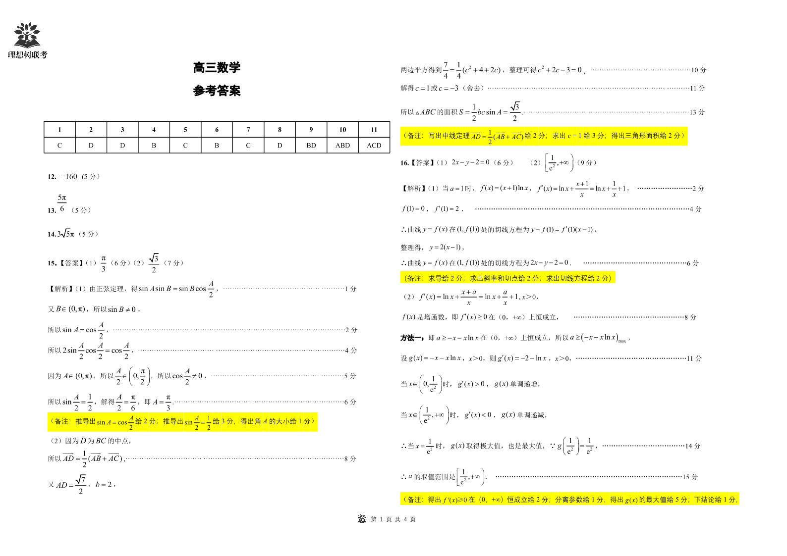 东北三省精准教学联盟2025届高三3月联考 数学答案.pdf