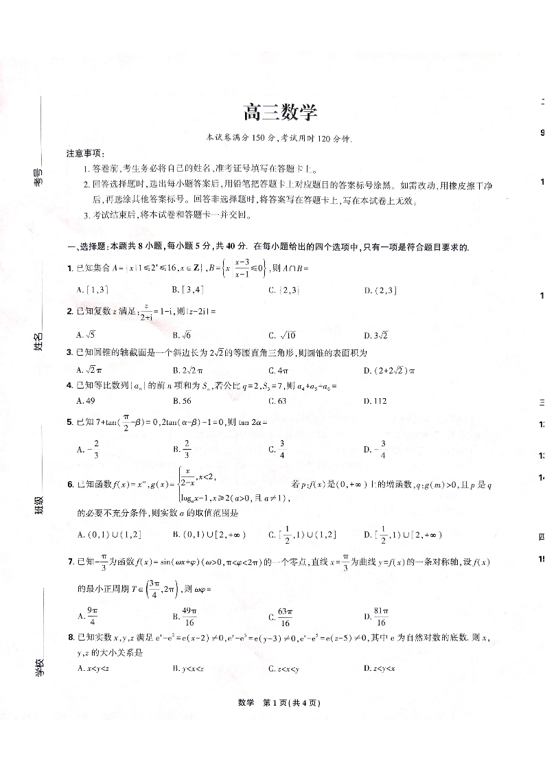 东北三省精准教学联盟2025届高三3月联考 数学.pdf