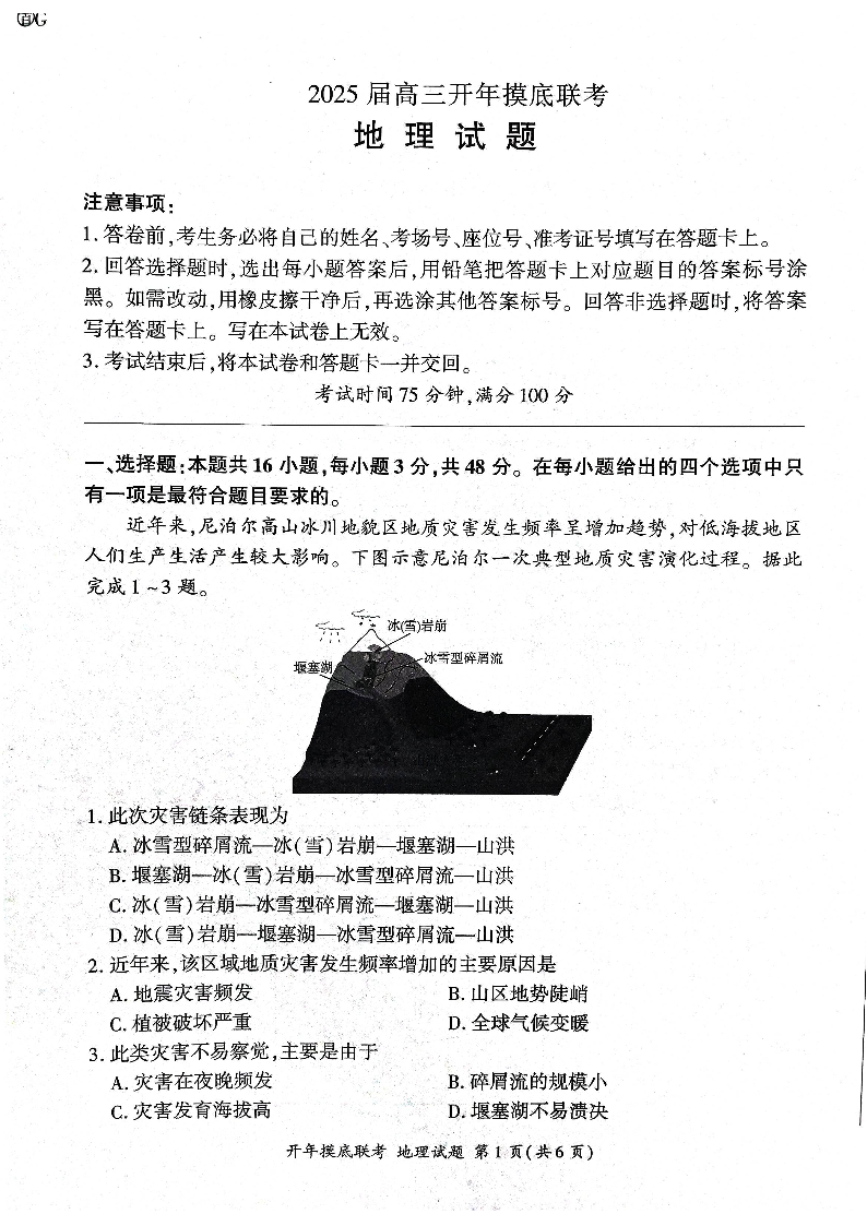 2025年辽宁百师联盟高三地理试题-3月.pdf