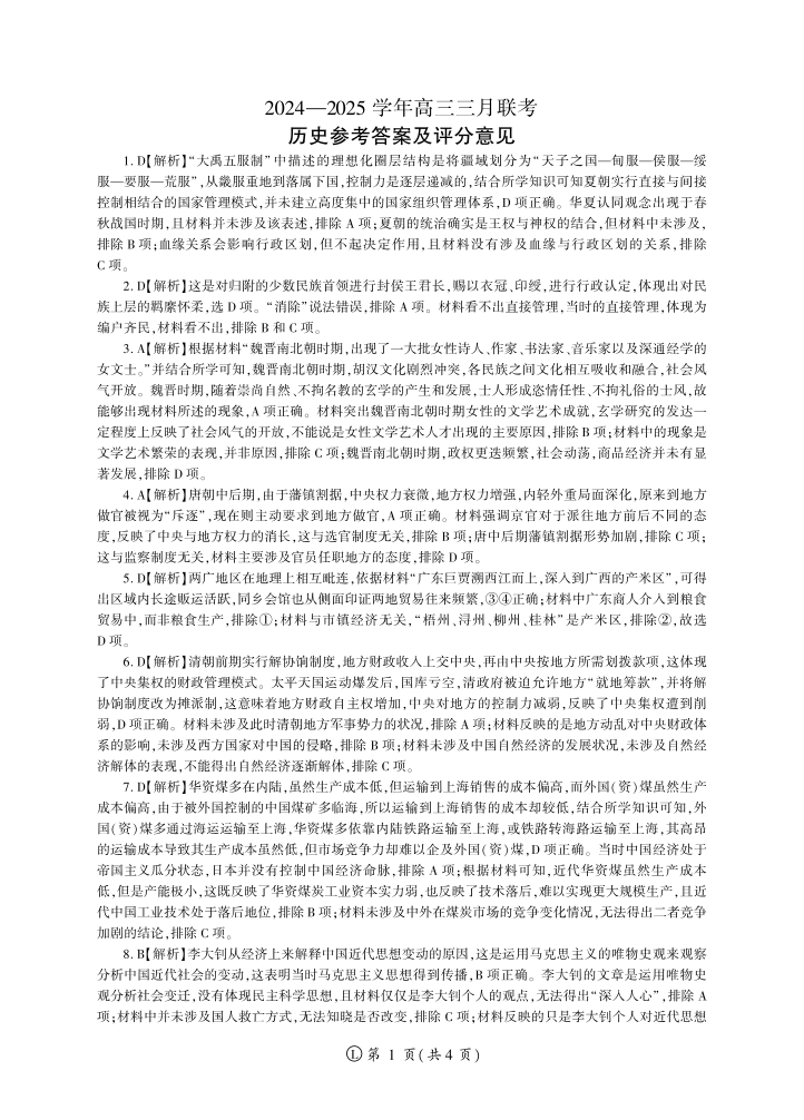 2025年辽宁百师联盟高三历史答案-3月.pdf