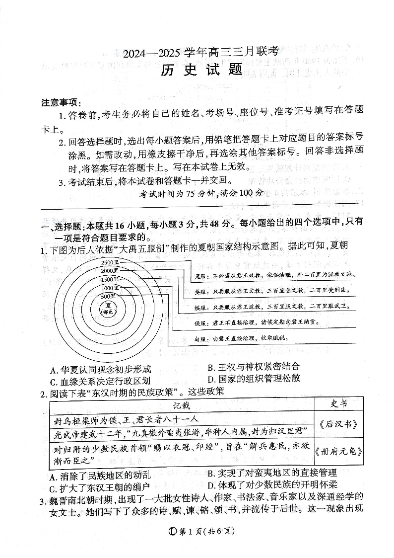 2025年辽宁百师联盟高三历史试题-3月.pdf