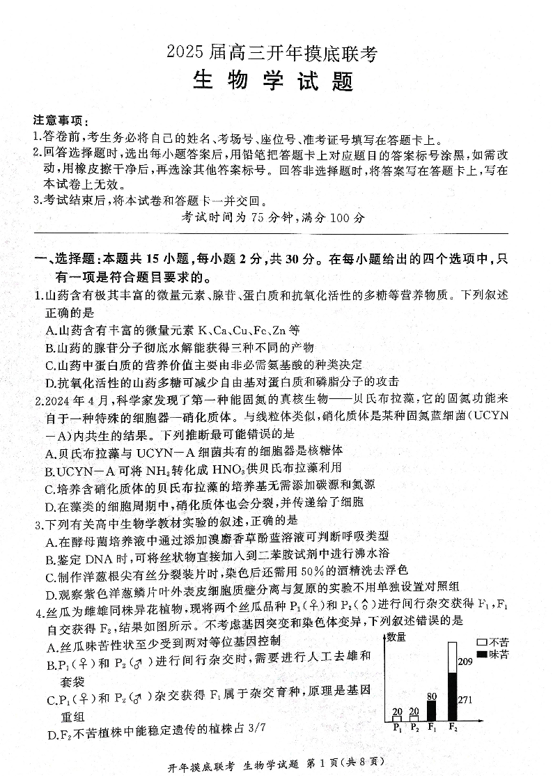 2025年辽宁百师联盟高三生物试题-3月.pdf
