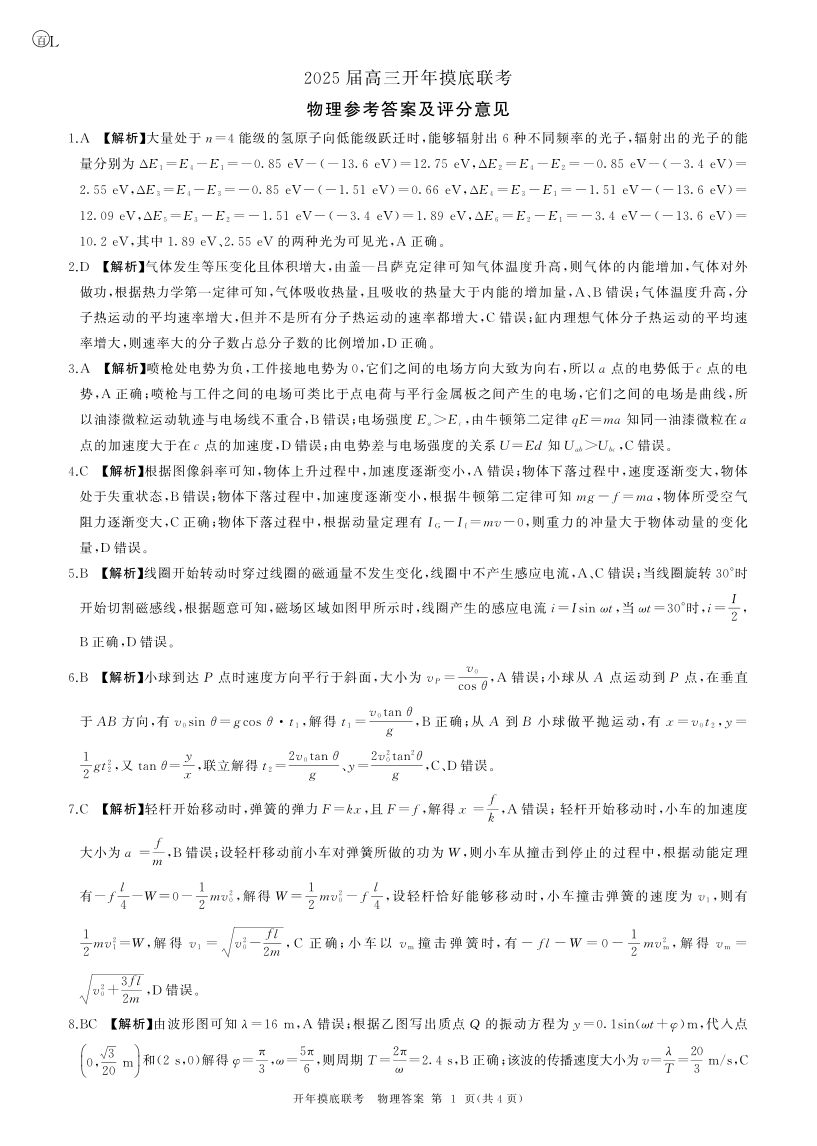 2025年辽宁百师联盟高三物理答案-3月.pdf