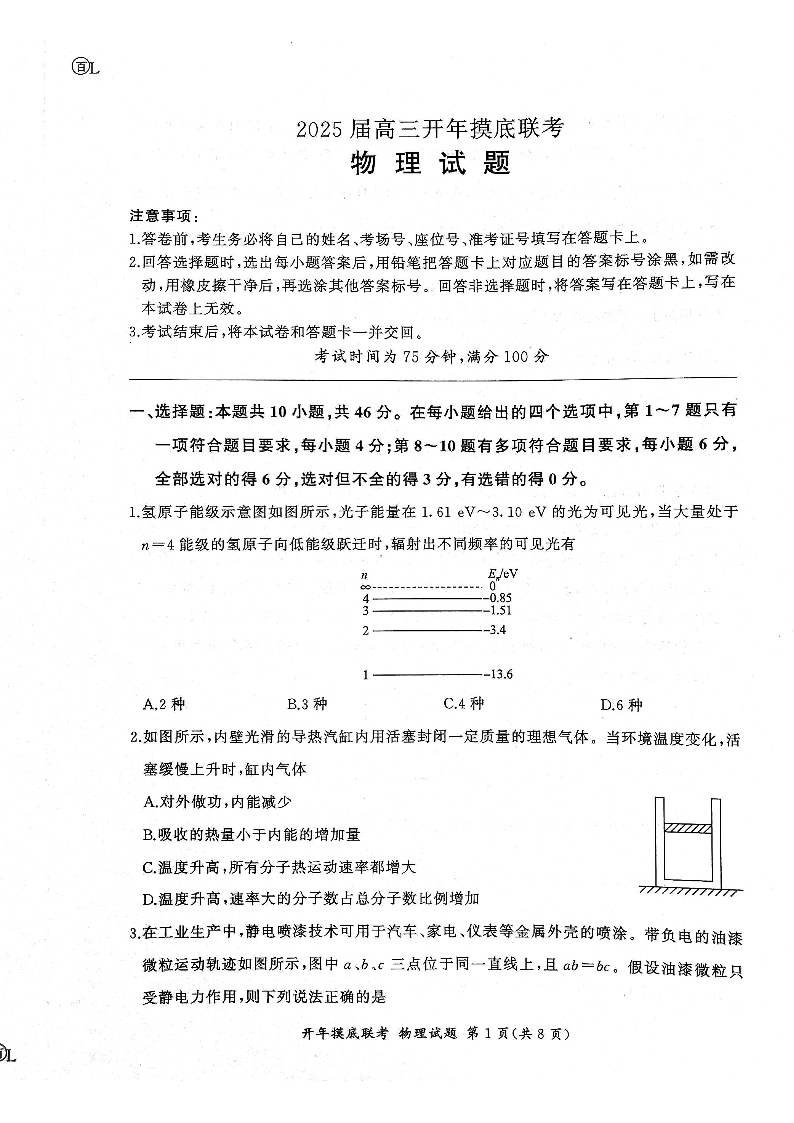 2025年辽宁百师联盟高三物理试题-3月.pdf