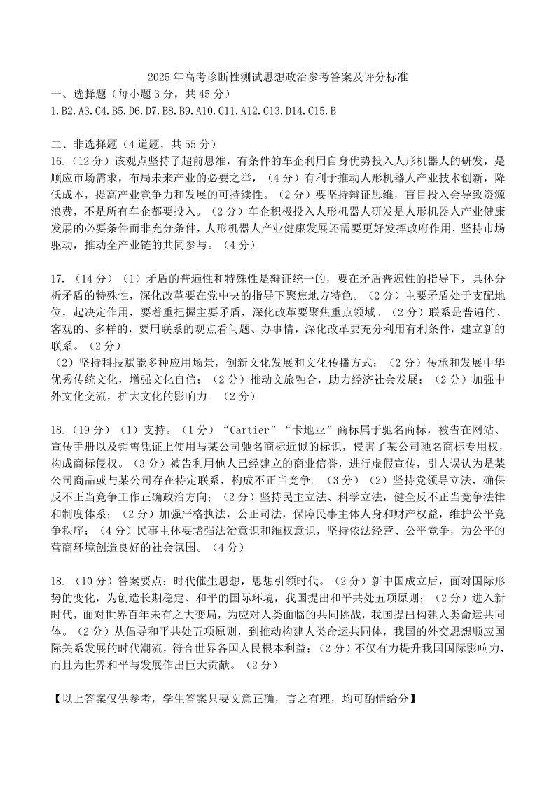 2025年山东烟台、德州、东营高考诊断性测试 政治答案.pdf