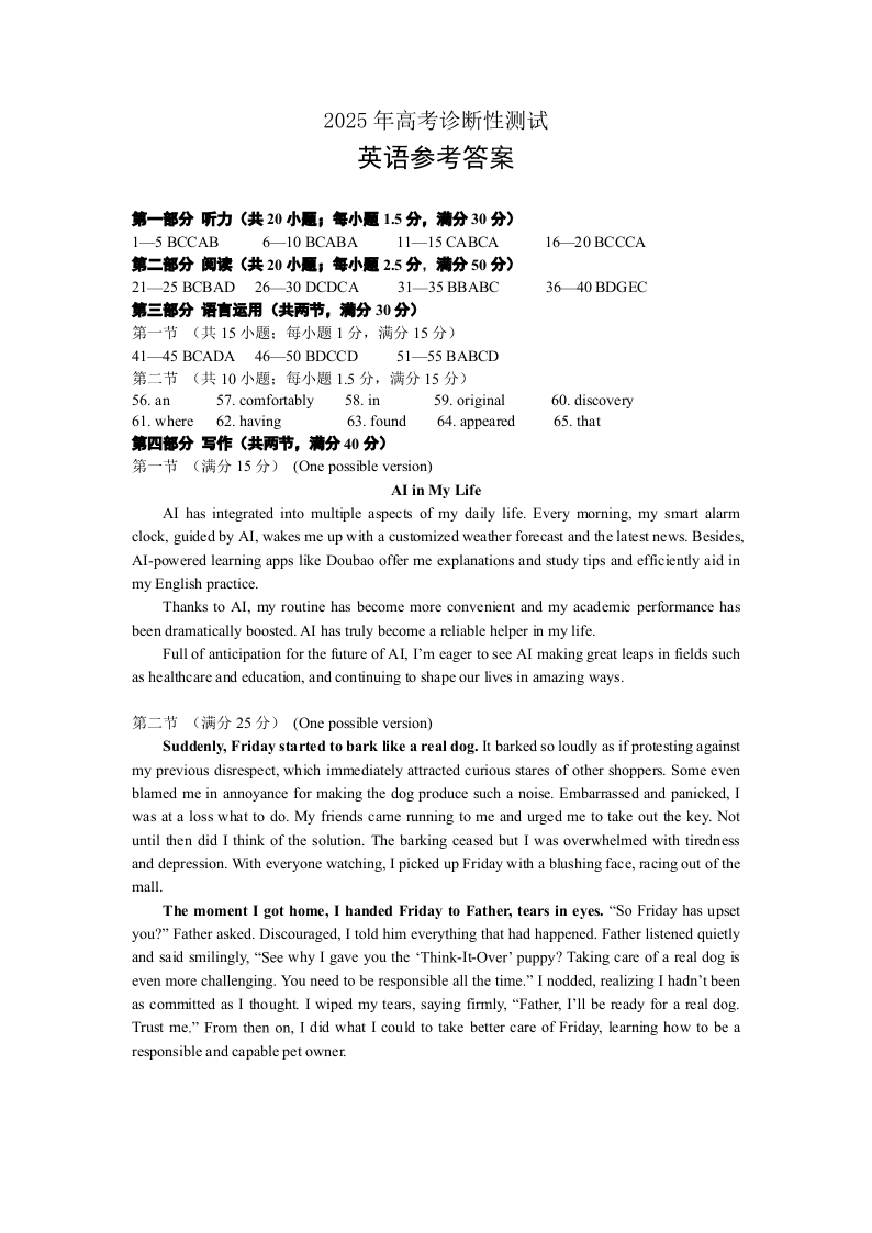 2025年山东烟台、德州、东营高考诊断性测试 英语答案.pdf