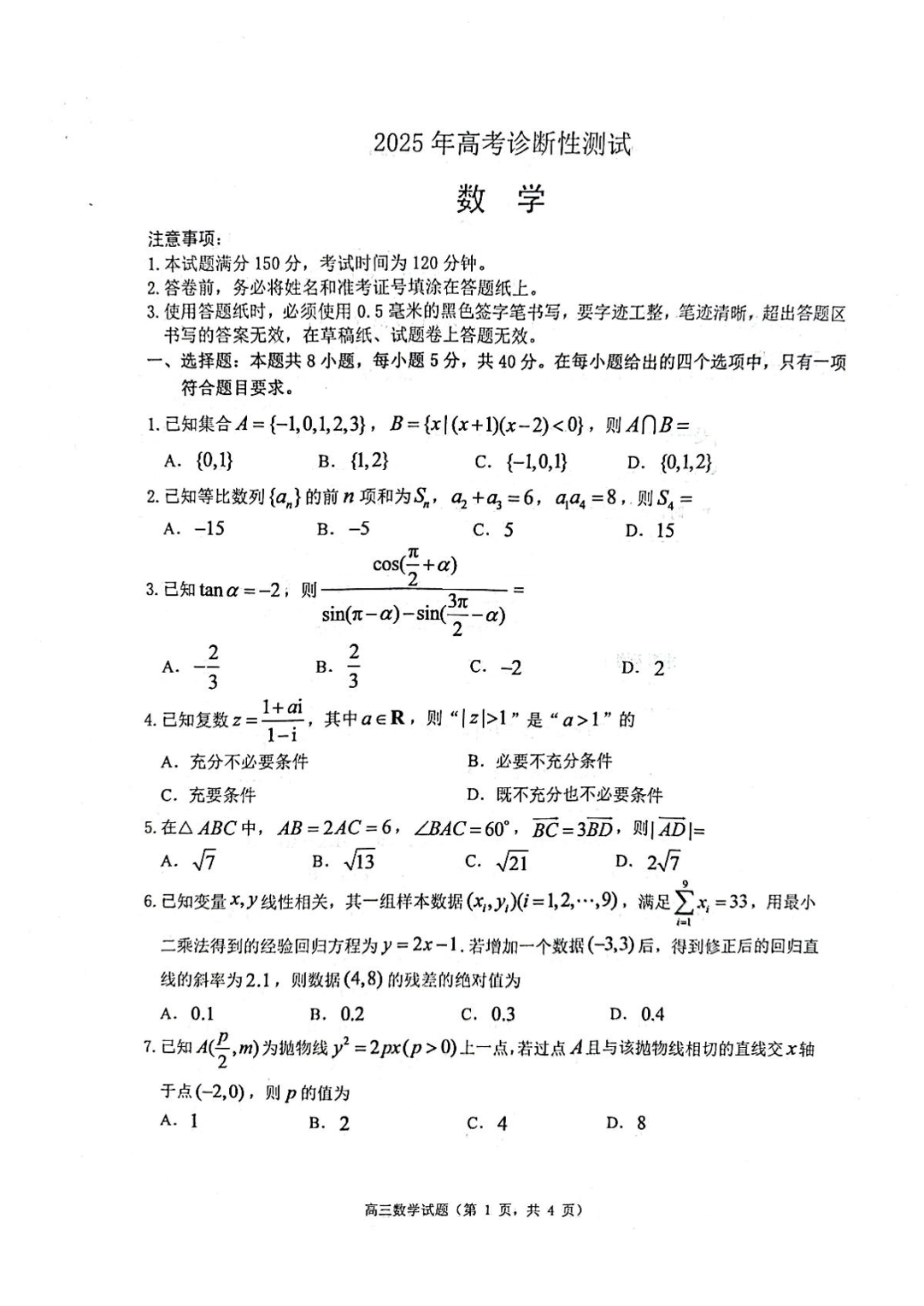 2025年山东烟台、德州、东营高考诊断性测试 数学.pdf