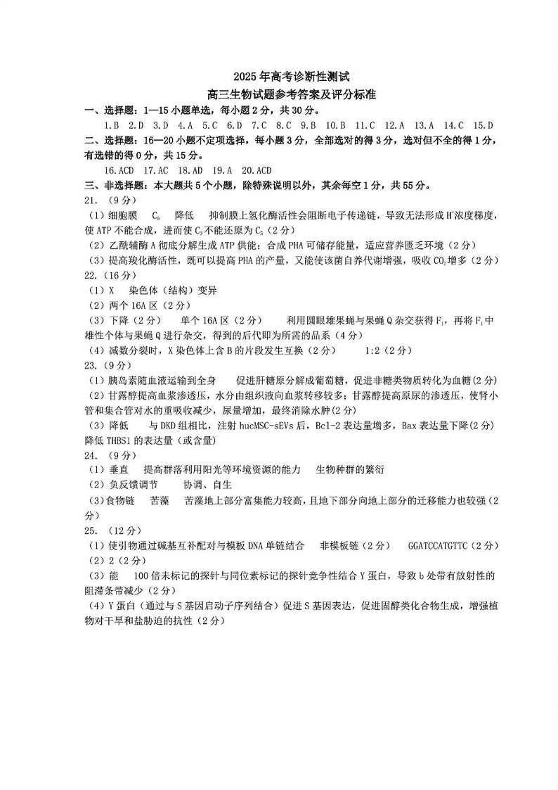 2025年山东烟台、德州、东营高考诊断性测试 生物答案.pdf