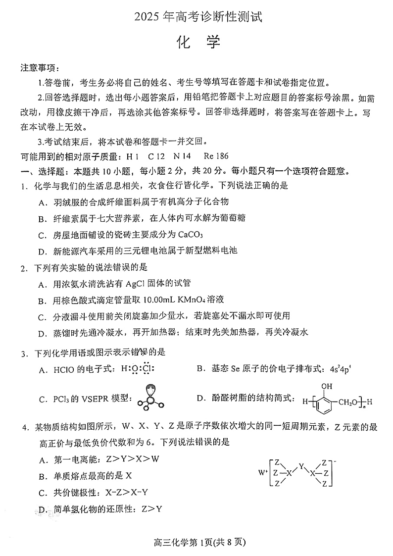 2025年山东烟台、德州、东营高考诊断性测试 化学.pdf