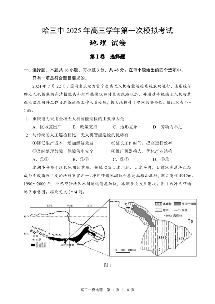 哈三中2025年高三学年第一次模拟考试 地理.pdf