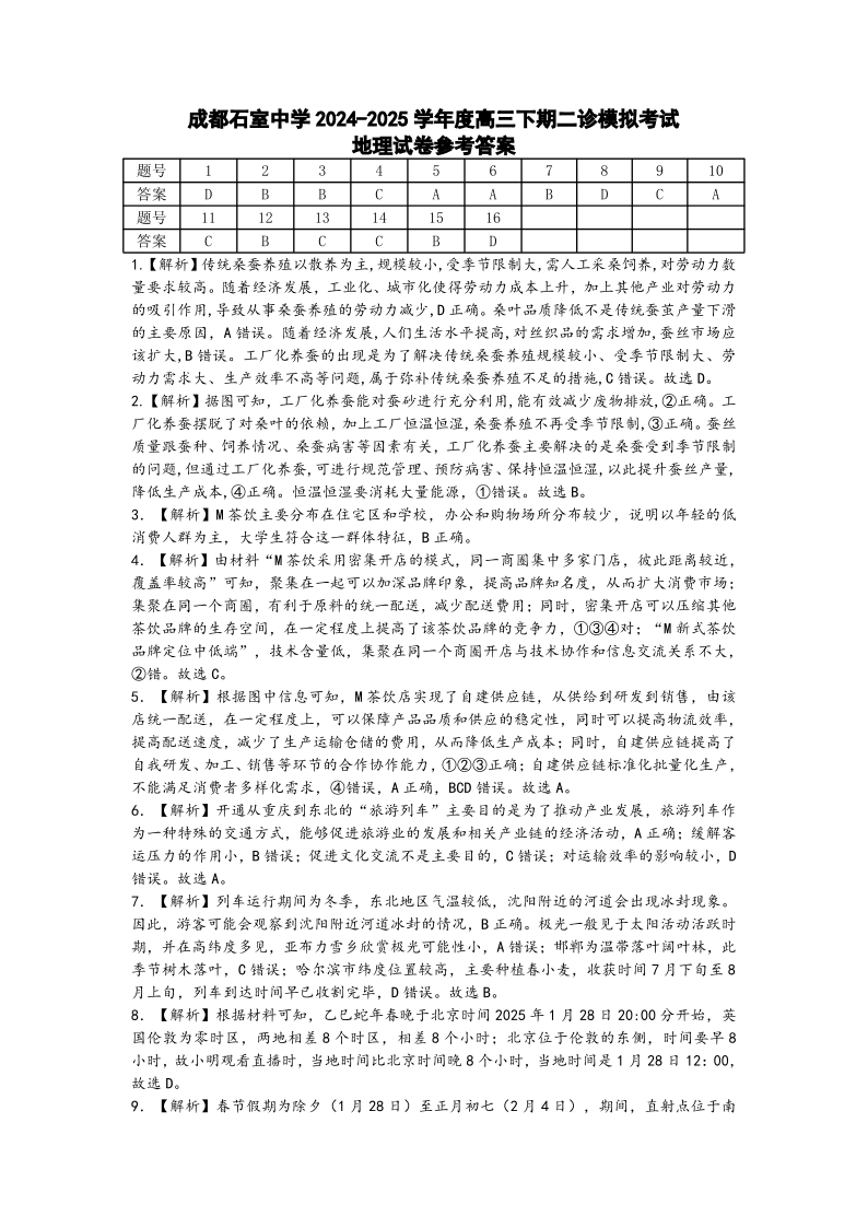 成都石室中学2024-2025学年度下期高2025届二诊模拟考试 地理答案.pdf