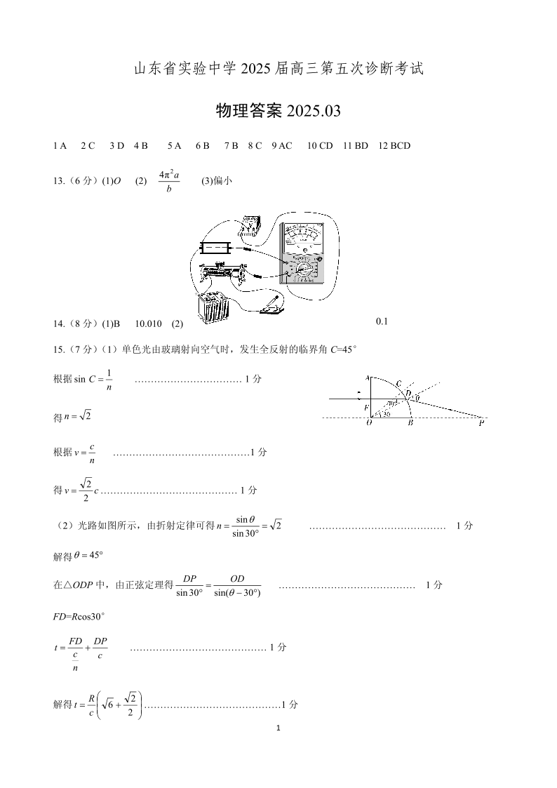 山东省实验中学2025届高三第五次诊断考试 物理答案.pdf