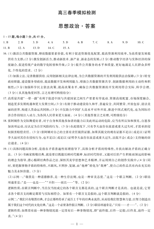 河南省天一大联考2025届高三春季模拟检测 政治答案.pdf