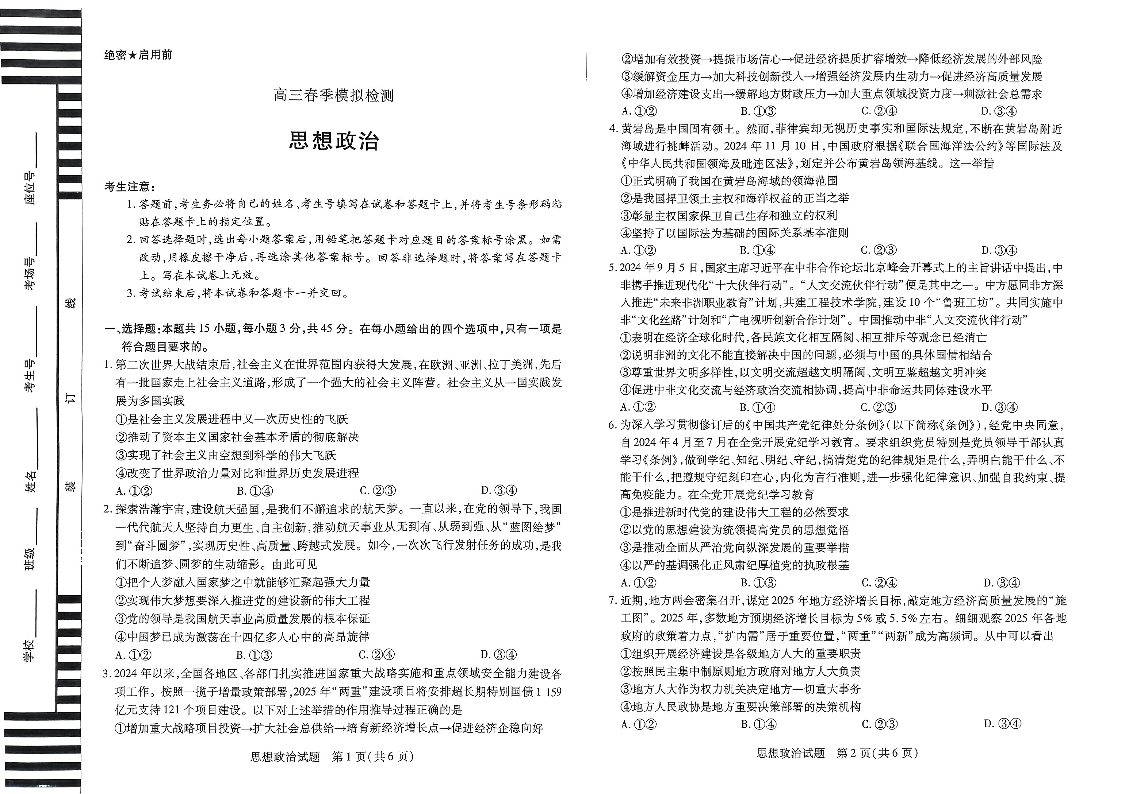 河南省天一大联考2025届高三春季模拟检测 政治.pdf