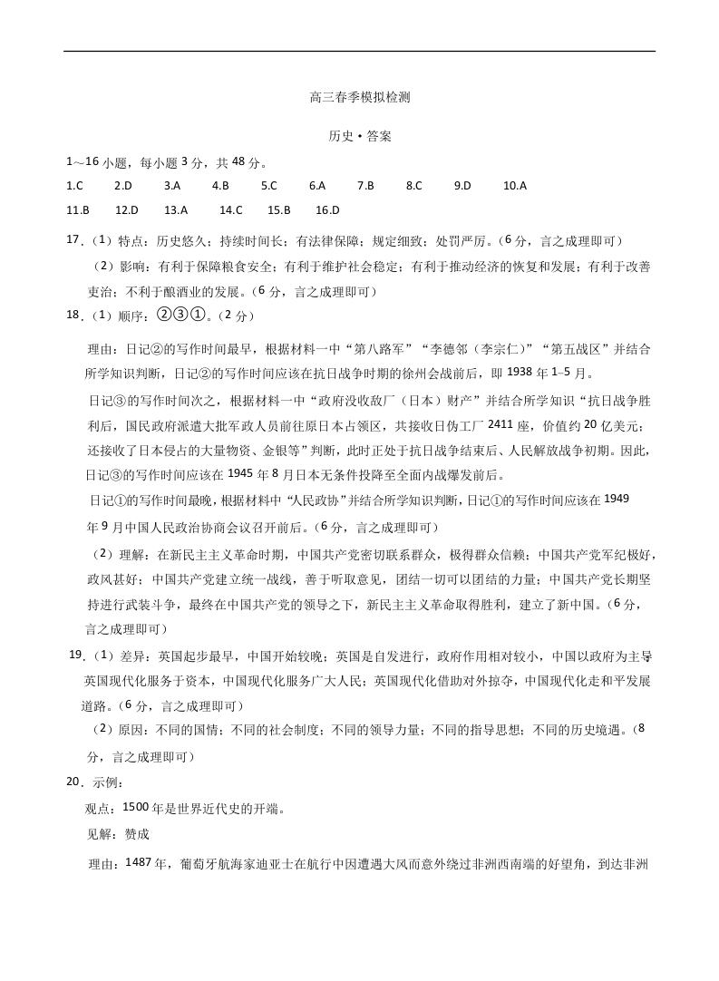 河南省天一大联考2025届高三春季模拟检测 历史答案.docx