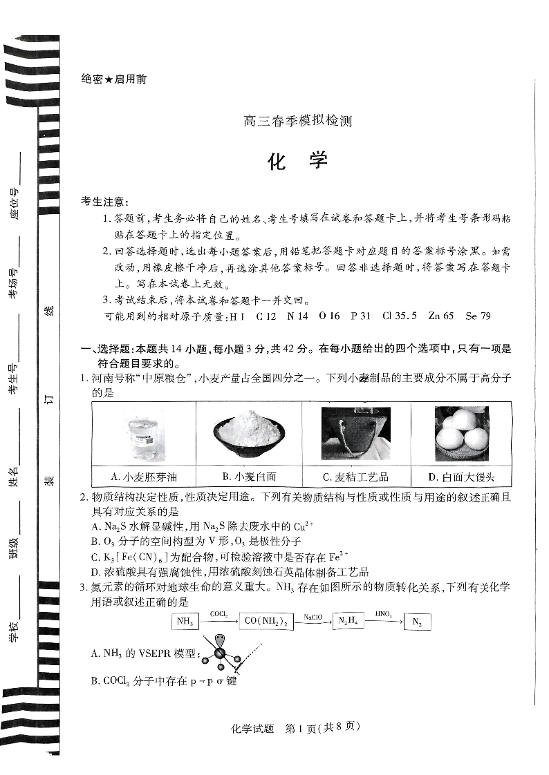 河南省天一大联考2025届高三春季模拟检测 化学.pdf