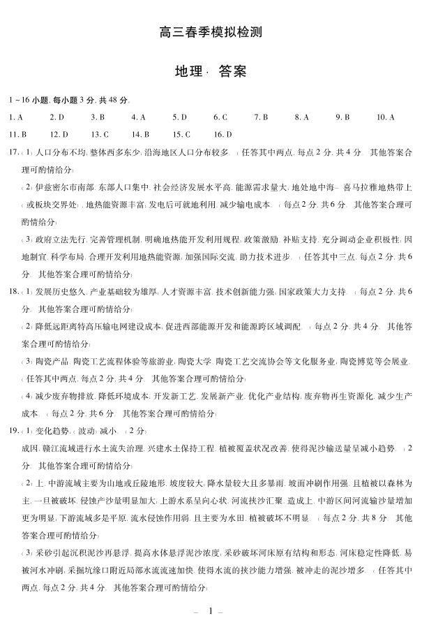 河南省天一大联考2025届高三春季模拟检测 地理答案.pdf