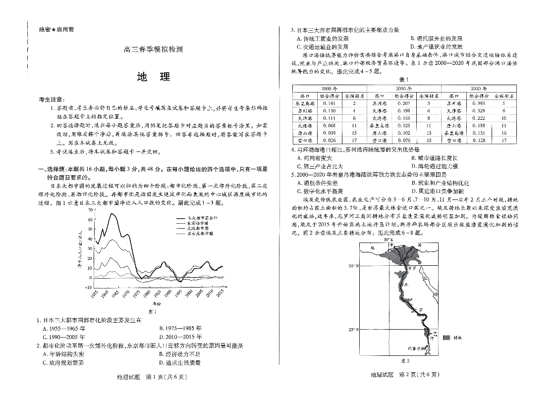 河南省天一大联考2025届高三春季模拟检测 地理.pdf