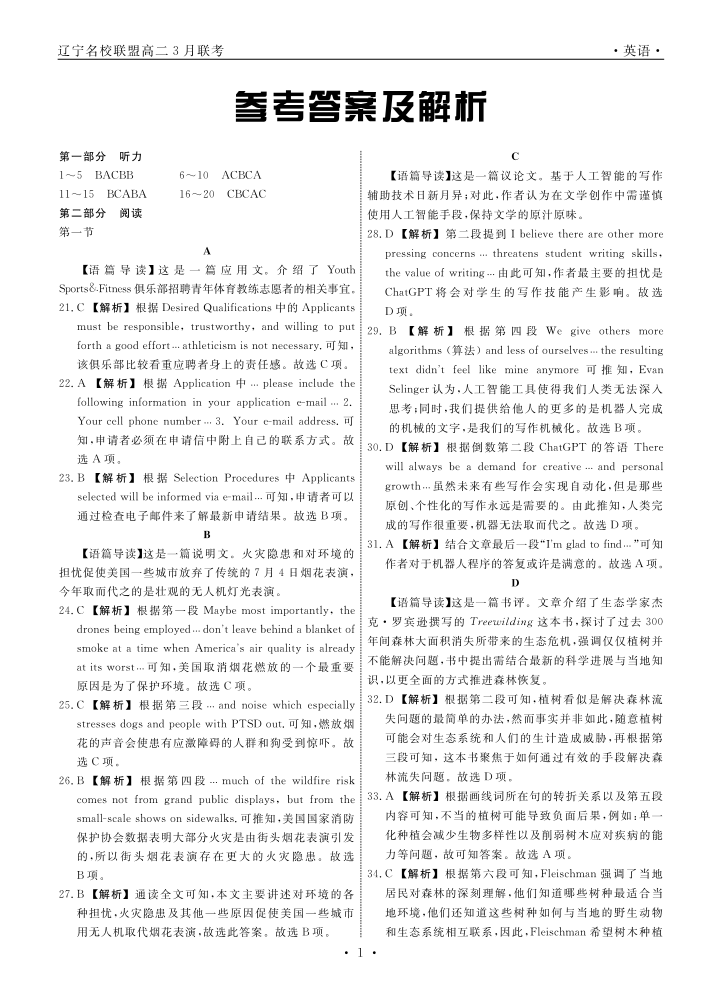 辽宁省名校联盟2025年高二3月份联合考试 英语答案.pdf