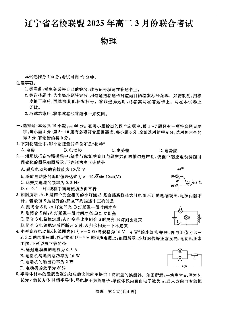 辽宁省名校联盟2025年高二3月份联合考试 物理.pdf