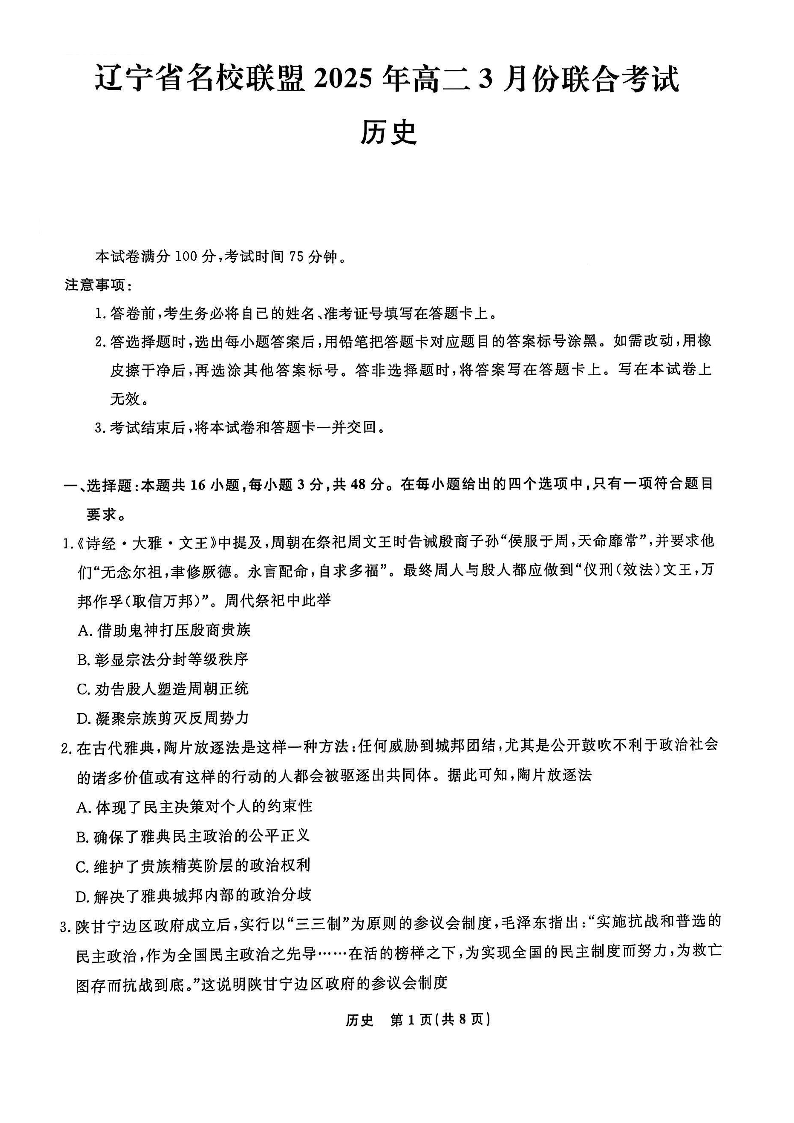 辽宁省名校联盟2025年高二3月份联合考试 历史.pdf