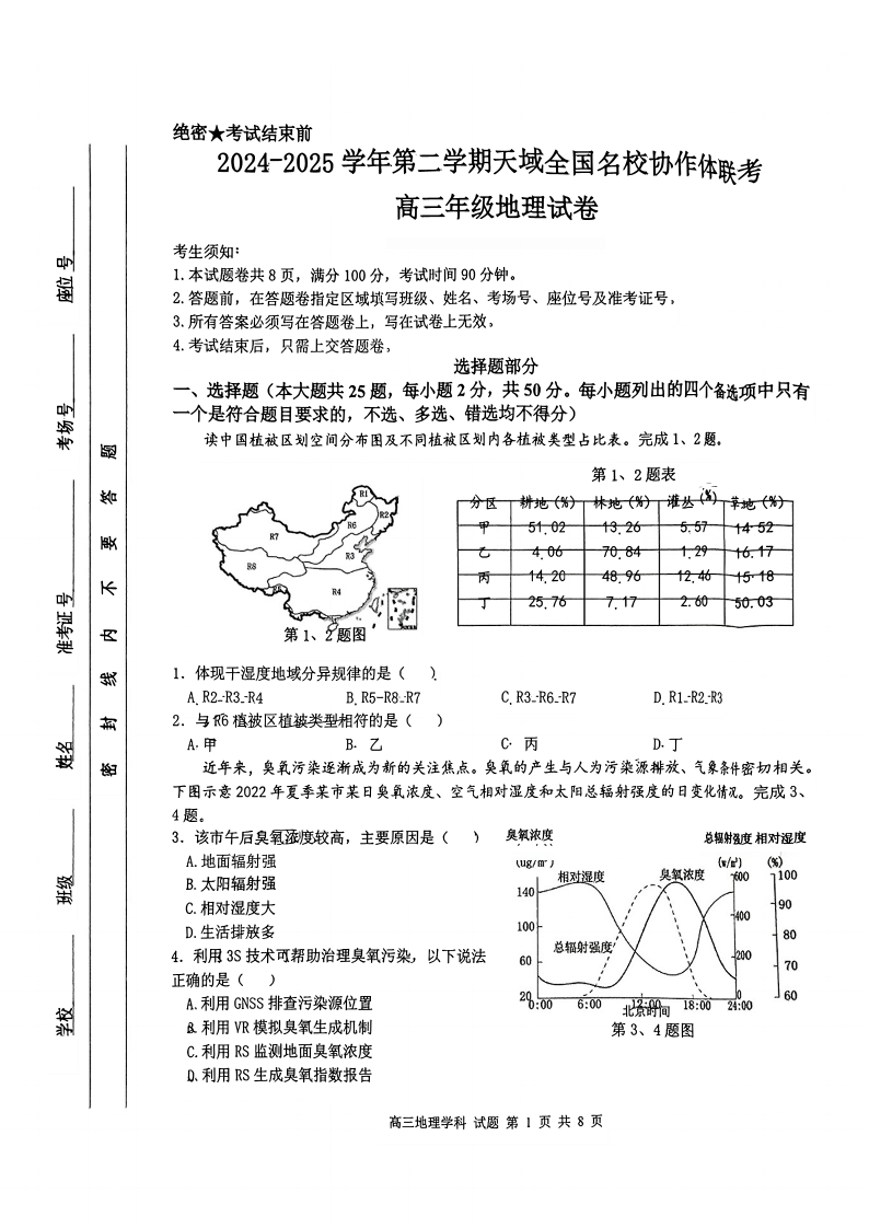 2024-2025学年第二学期天域全国名校协作体高三3月联考 地理.pdf