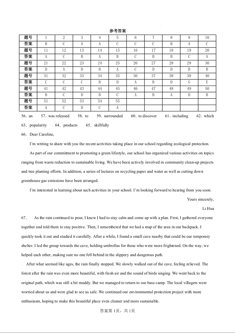 四川省广安第二中学校2025届高三下学期二模 英语答案.docx