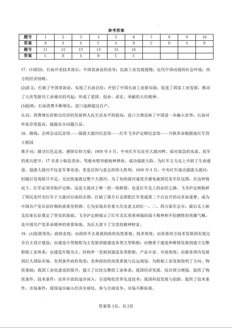 四川省广安第二中学校2025届高三下学期二模 历史答案.docx