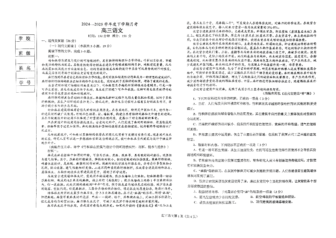辽宁省鞍山市2024-2025学年高三下学期第一次月考 语文.pdf
