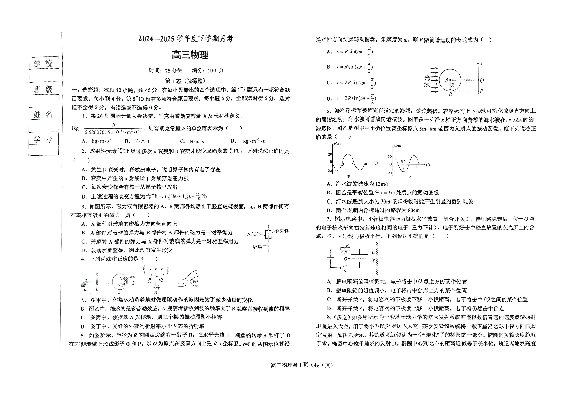 辽宁省鞍山市2024-2025学年高三下学期第一次月考 物理.pdf