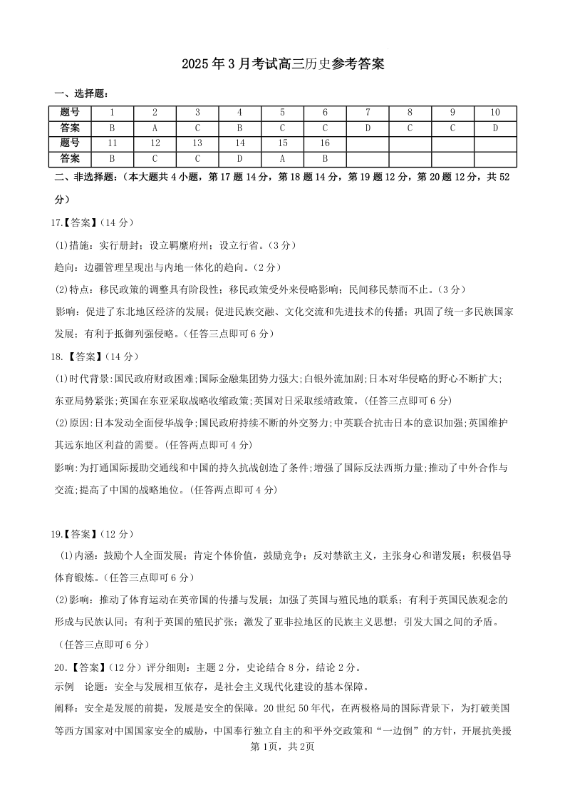 辽宁省鞍山市2024-2025学年高三下学期第一次月考 历史答案.docx