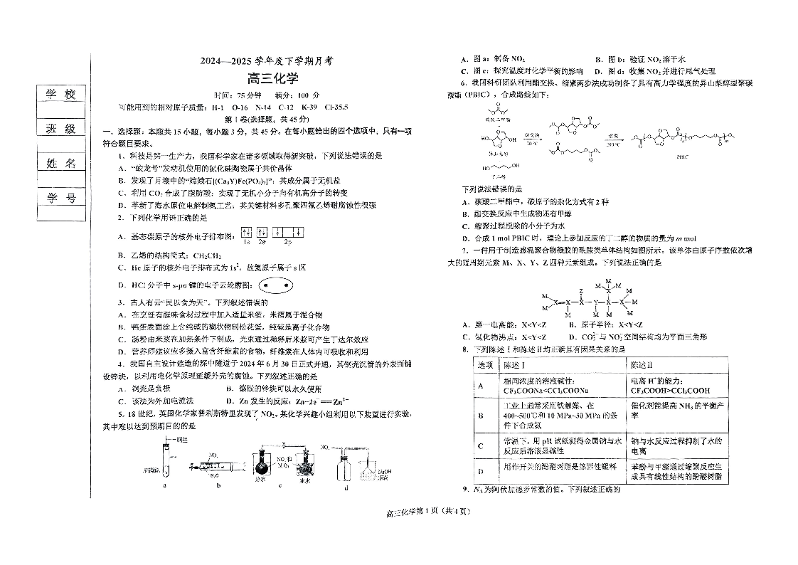 辽宁省鞍山市2024-2025学年高三下学期第一次月考 化学.pdf