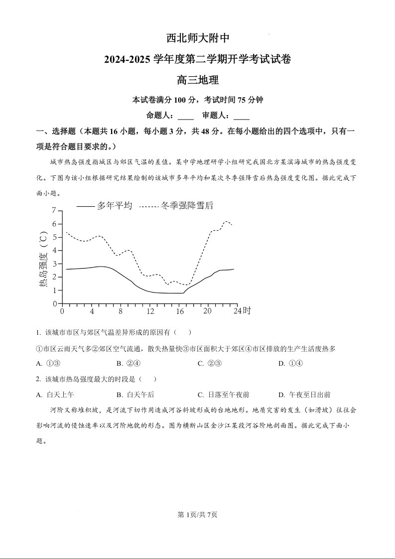 西北师大附中2025届第二学期开学考试 地理.docx