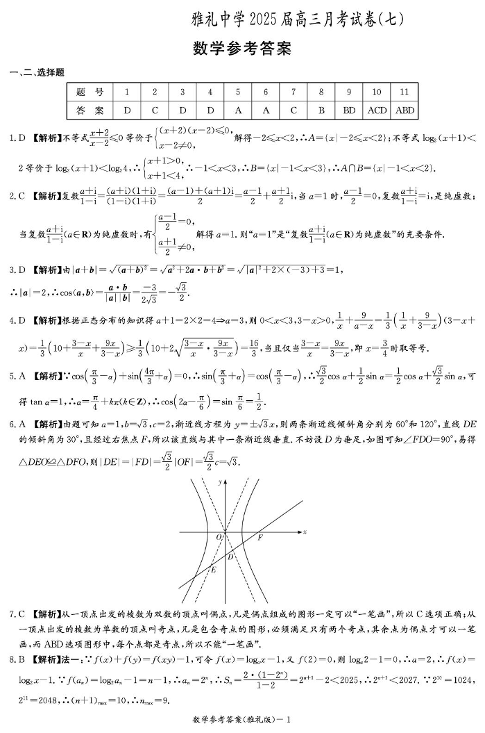 湖南省长沙市雅礼中学2025届高三月考试卷(七)数学答案.pdf