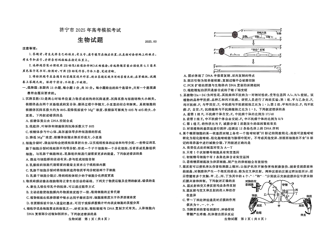 山东省济宁市2025年高考模拟考试(一模)生物.pdf
