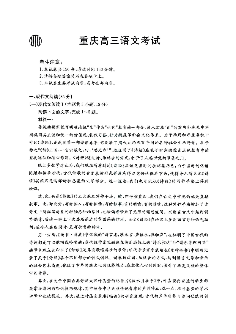 重庆市好教育联盟2025届高三下学期3月联考 语文.pdf