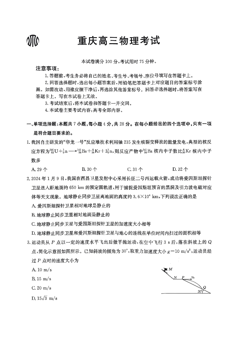重庆市好教育联盟2025届高三下学期3月联考 物理.pdf