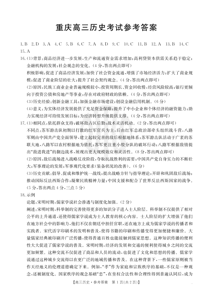 重庆市好教育联盟2025届高三下学期3月联考 历史答案.pdf