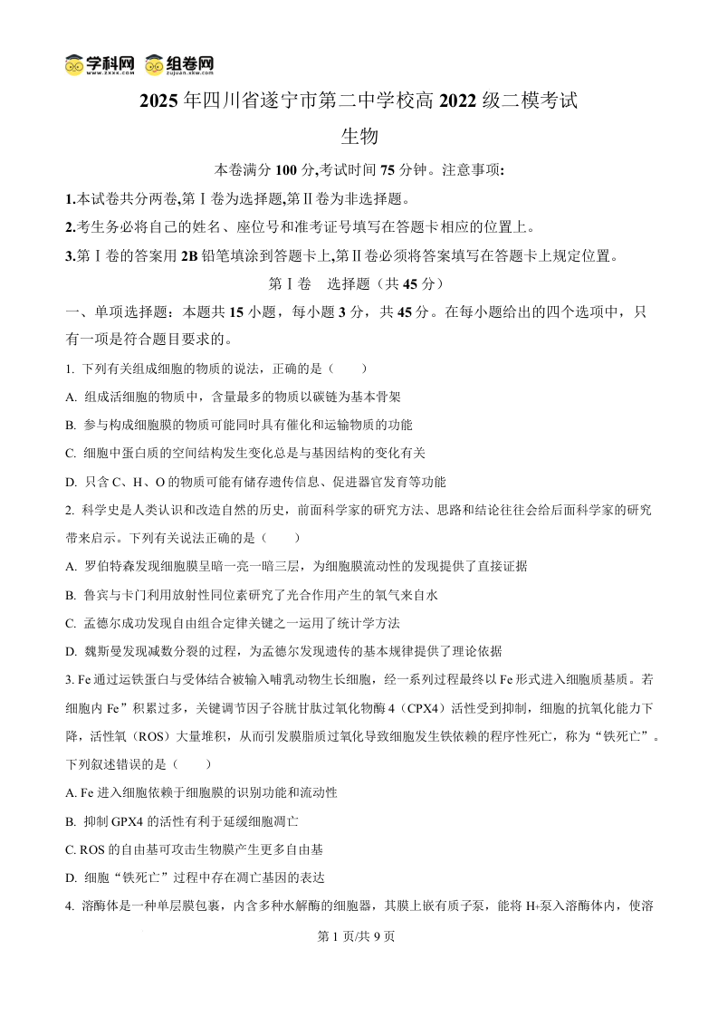 四川省遂宁市第二中学校高2022级二模考试 生物.docx