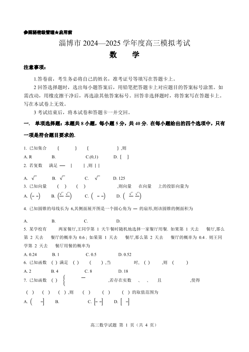 山东省淄博市2025届高三3月模拟考试 数学.pdf