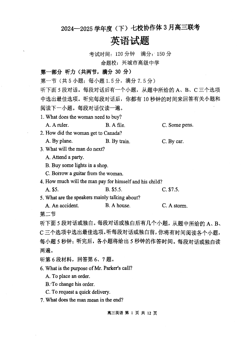 辽宁省七校协作体2024-2025学年度(下)3月高三联考 英语.pdf