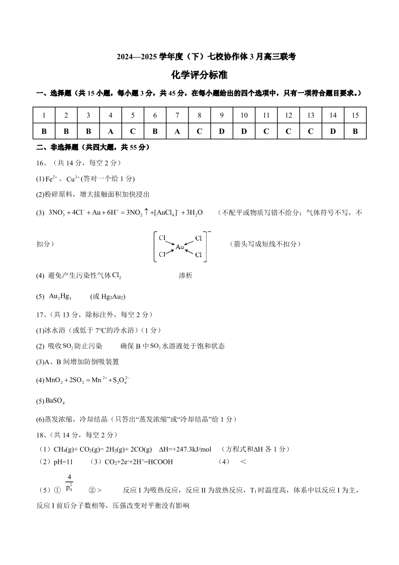 辽宁省七校协作体2024-2025学年度(下)3月高三联考 化学答案.pdf
